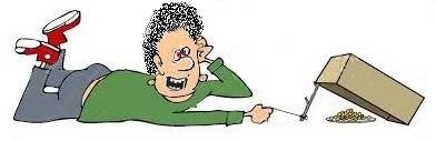 "Lekker puh!" wanneer de donorval dicht klapt... . Hij trapt er dus zèlf in! Geen van de dames heeft hem die val in geduwd!